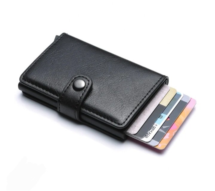 Portefeuille Avec Porte-cartes en Métal – Cuir – Noir