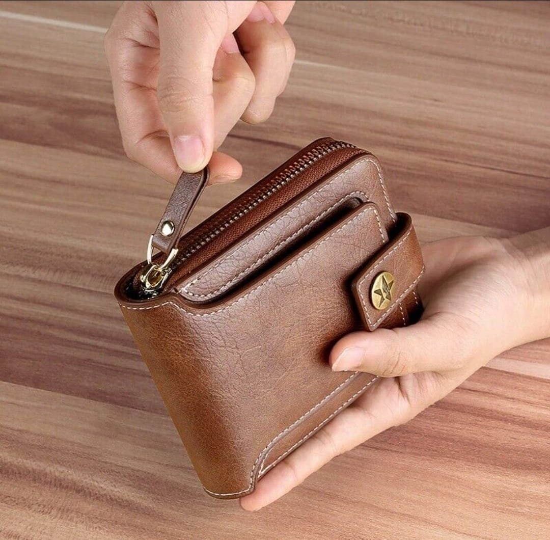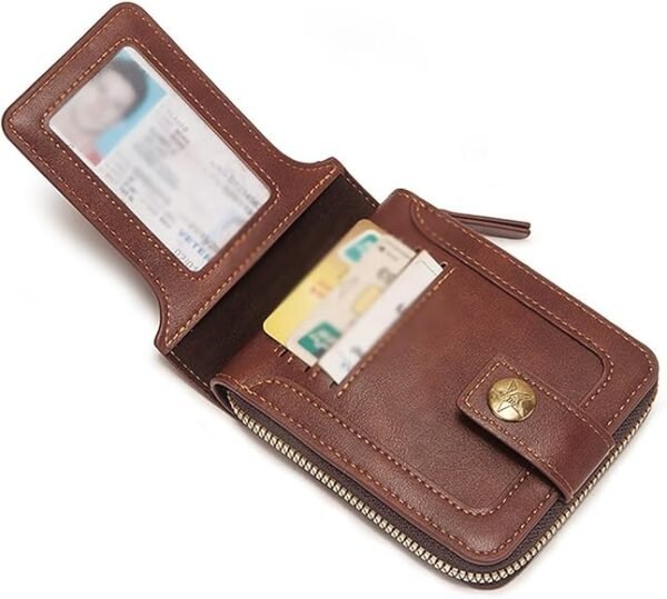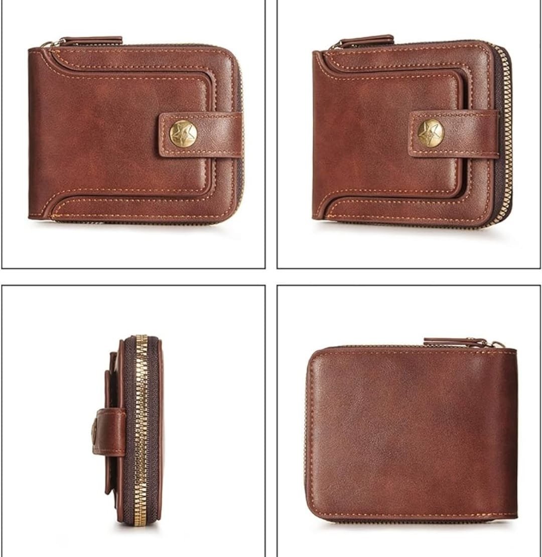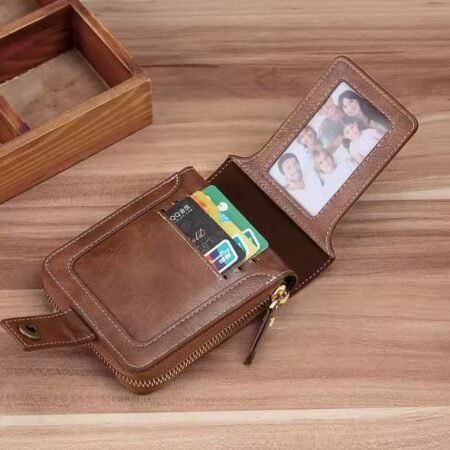 Portefeuille Classique en Cuir PU Pour Homme – Moraillon Court et Fermeture Éclair – Haute Qualité et Multi-Poches – Marron