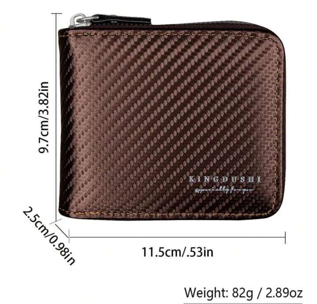 Fabriqué en 100 % cuir véritable, avec une taille parfaite de 4,8 x 4,4 x 0,8 pouces, s’adapte bien à votre poche avant ou arrière, portefeuille zippé à deux volets parfait pour hommes.