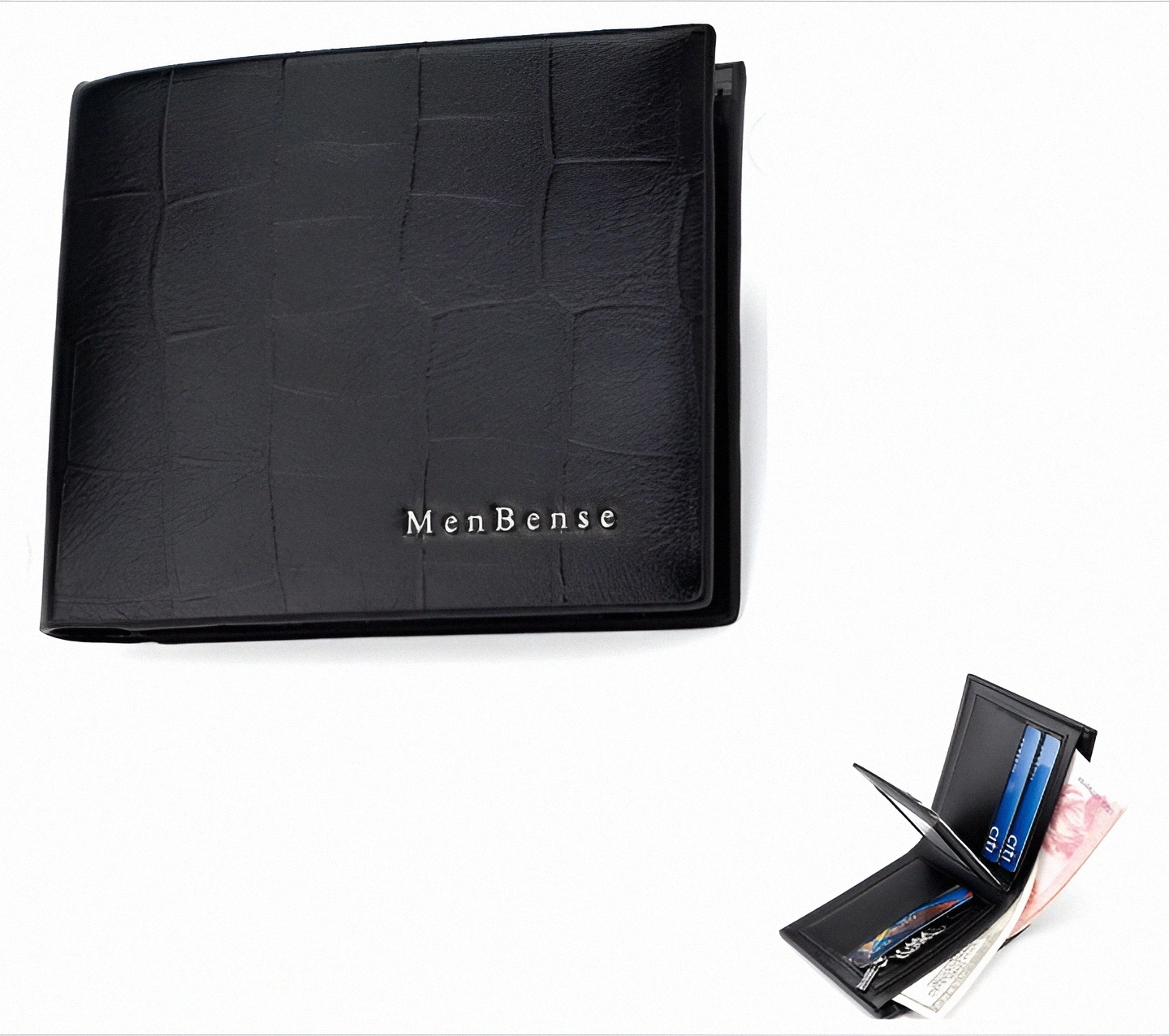 Portefeuille En Cuir Pour Homme – Design Élégant à Deux Volets – Avec Porte – Monnaie Intérieur – Porte-Cartes – Qualité Supérieure – Noir