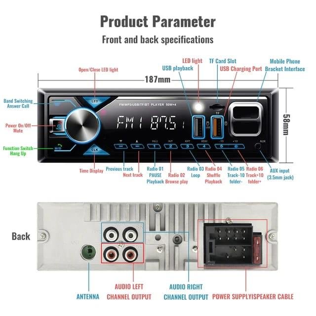 Bluetooth: Le bluetooth intégré est équipé d’une puce fm, qui peut écouter de la musique ou répondre à l’appel. Système d’autoradio bluetooth pour voiture.