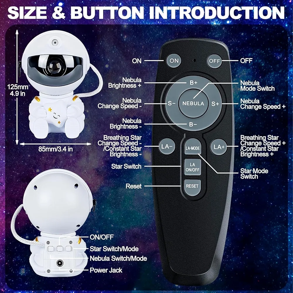 Projecteur D’étoiles Galactiques En Forme D’astronaute – LED – Télécommande