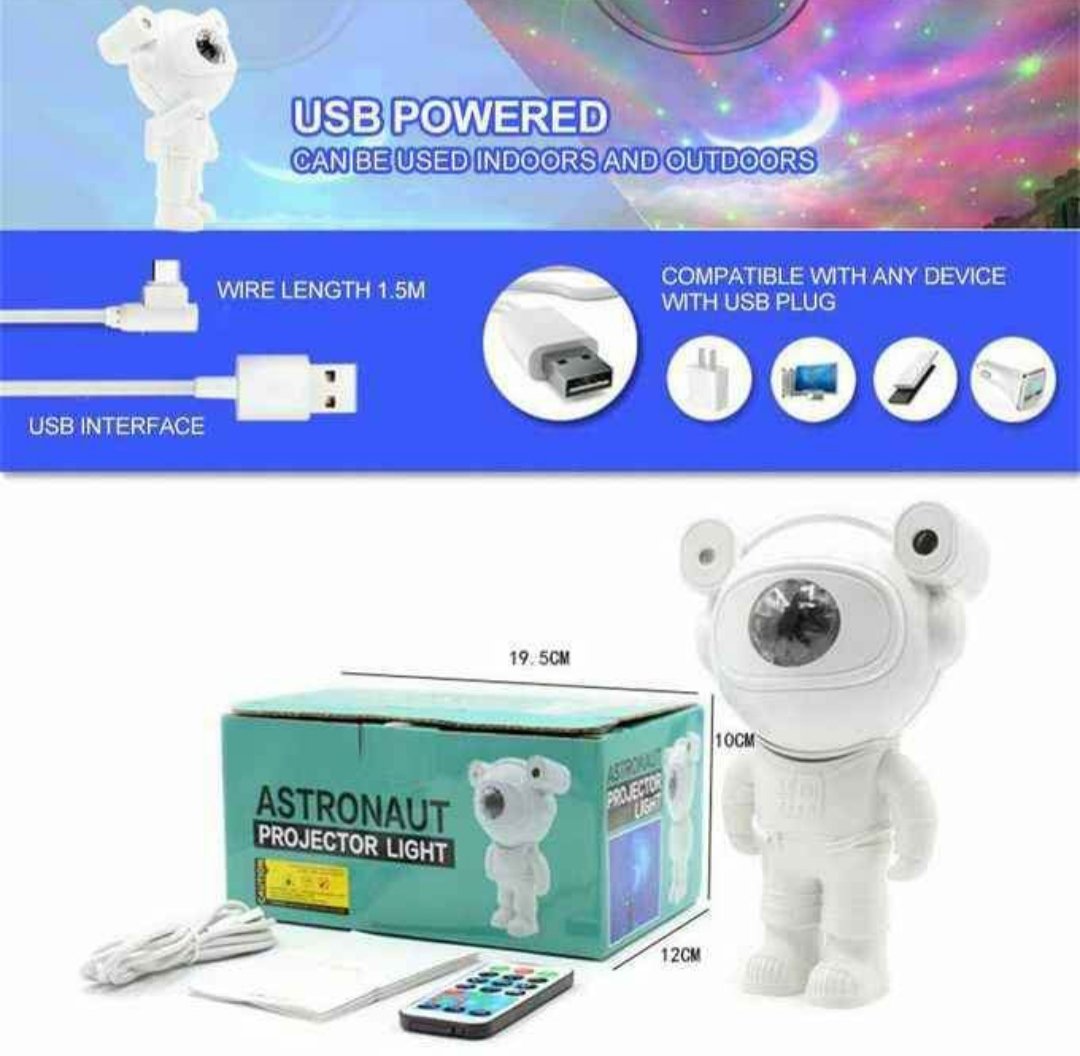 - 1×projecteur led nébuleuse avec télécommande et câble USB + manuel d’utilisation.