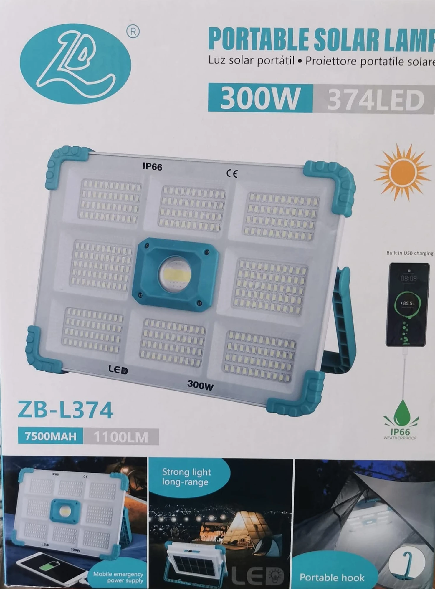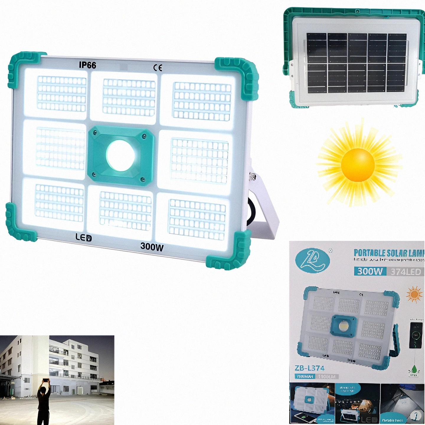 Projecteur Solaire COBA CB F374 – 300 W – 374 LED – Résistante ÀL’eau – Rechargeable – Blanc