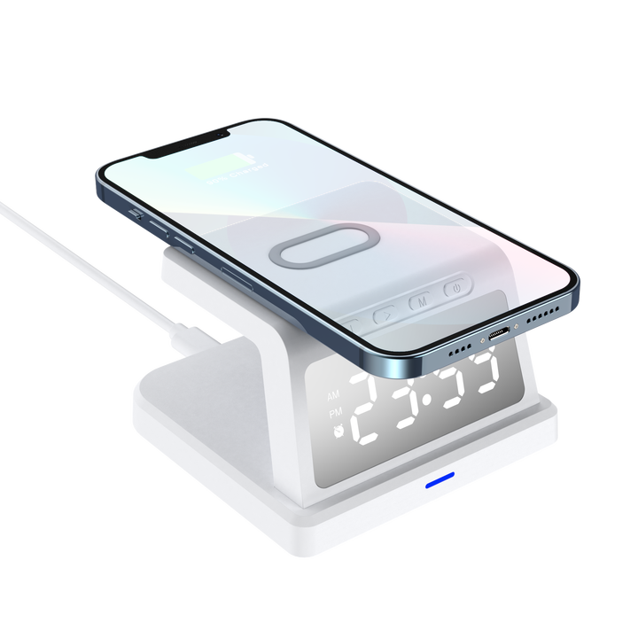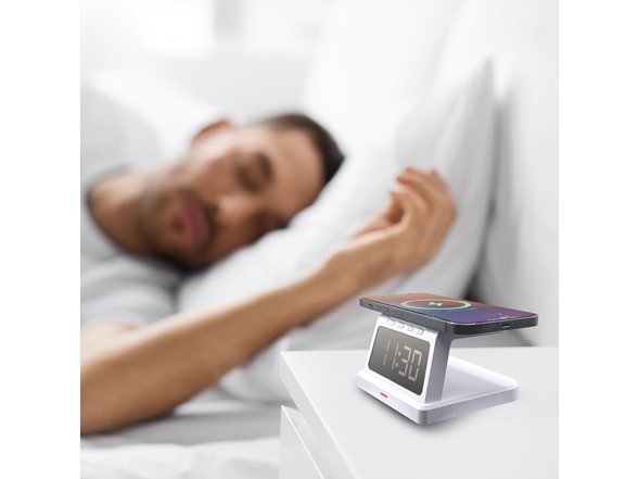 Ce réveil avec chargeur sans fil est conçu pour charger plusieurs appareils.