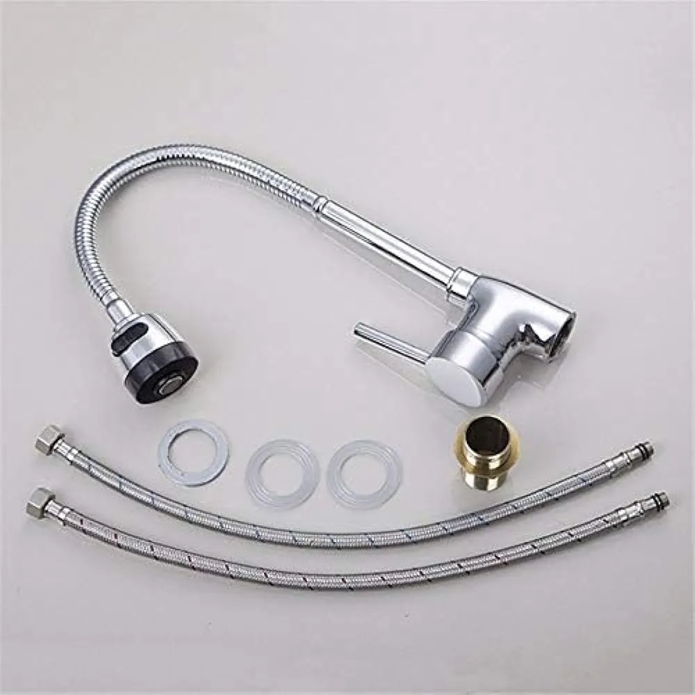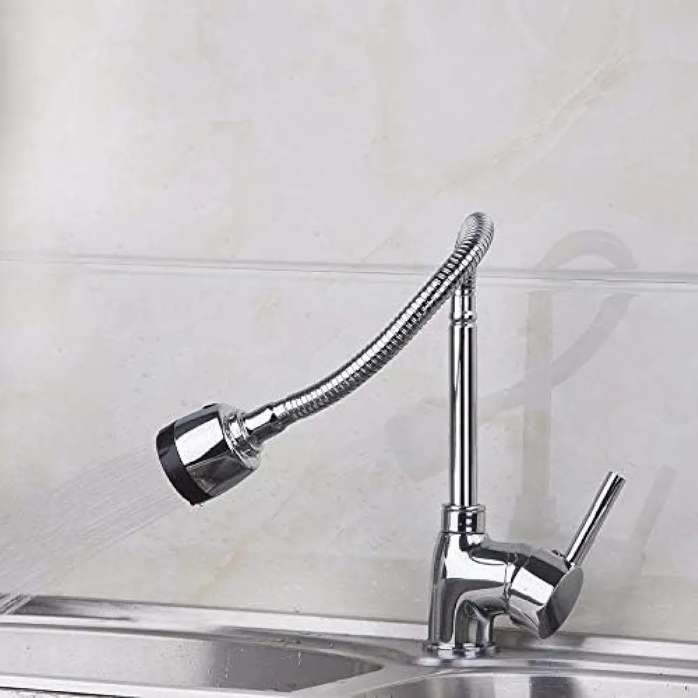 Robinet d’évier de cuisine avec bec pivotant – Plaque contemporaine en céramique chromée – Bobine – Rotation à 360°