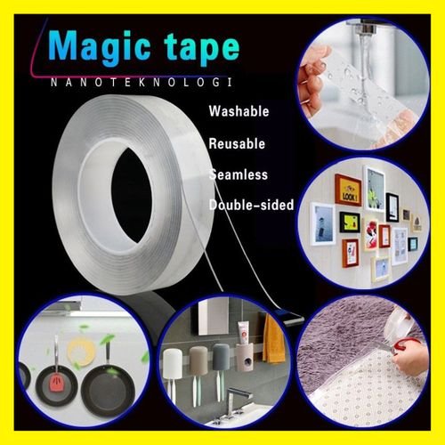 Ruban Adhésif Double Face – Transparent Multi-Usages – Réutilisable Etanche – 5 Mètres × 3mm