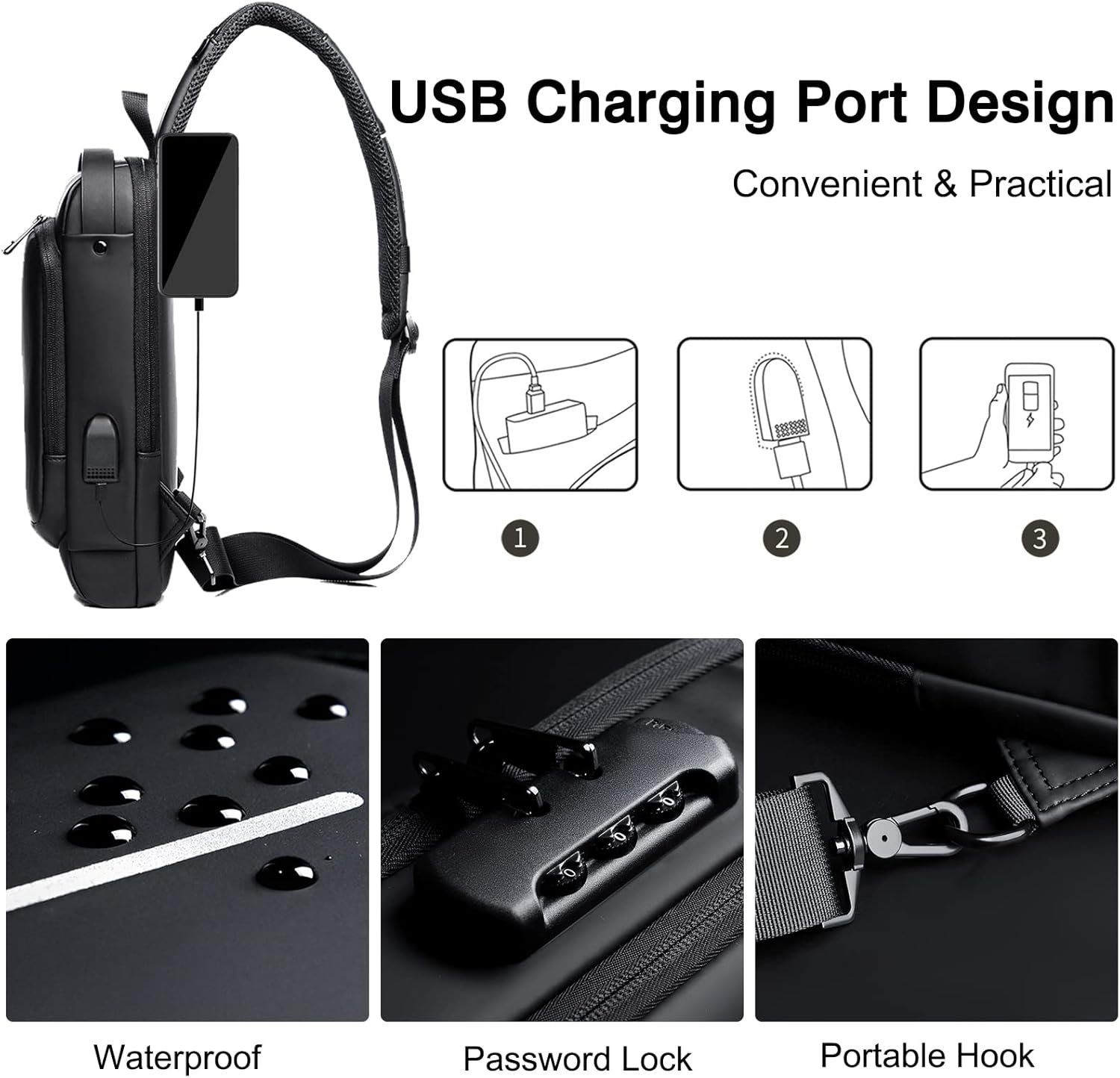 Sac à Bandoulière Antivol Pour Hommes – Pour Voyage – Sac Messager – Sac De Poitrine De Luxe – USB à L’intérieur – Multifonction – Étanche