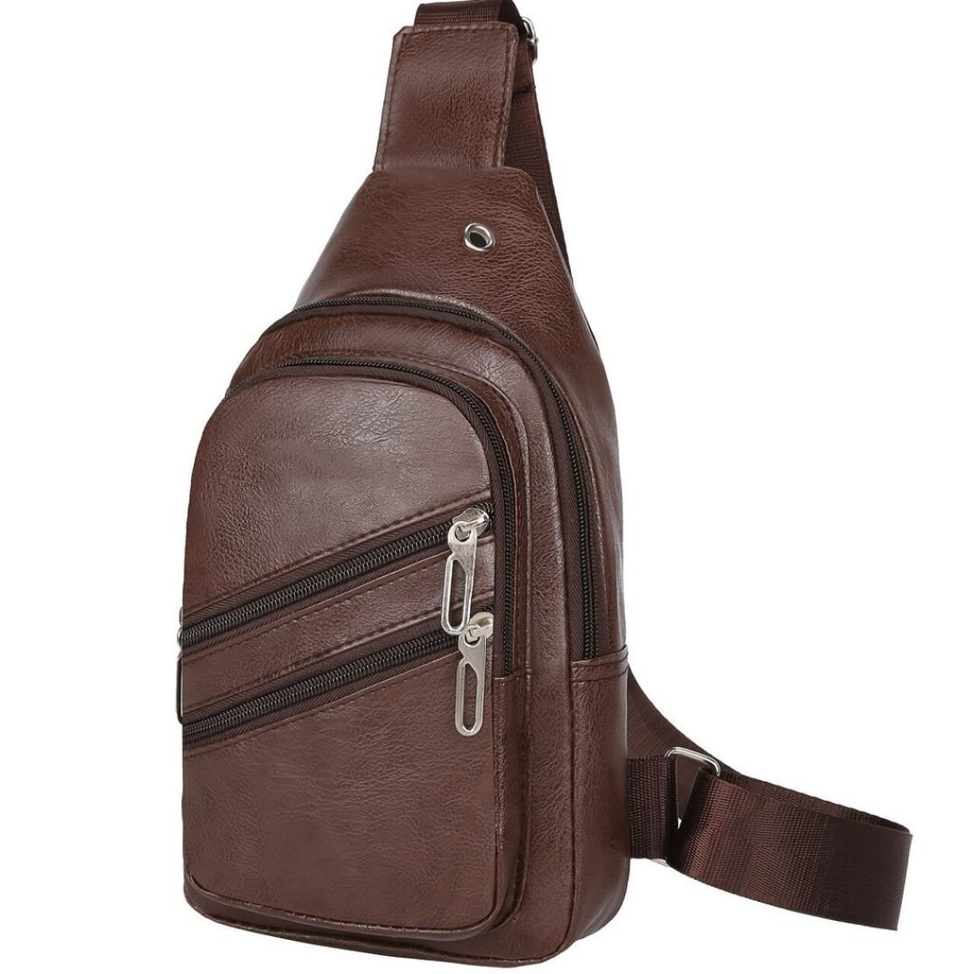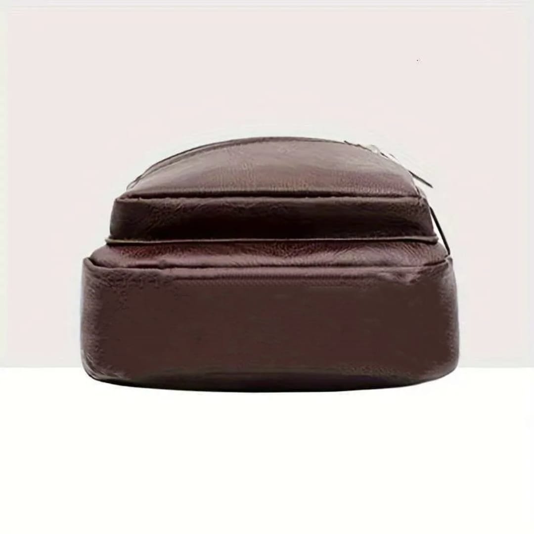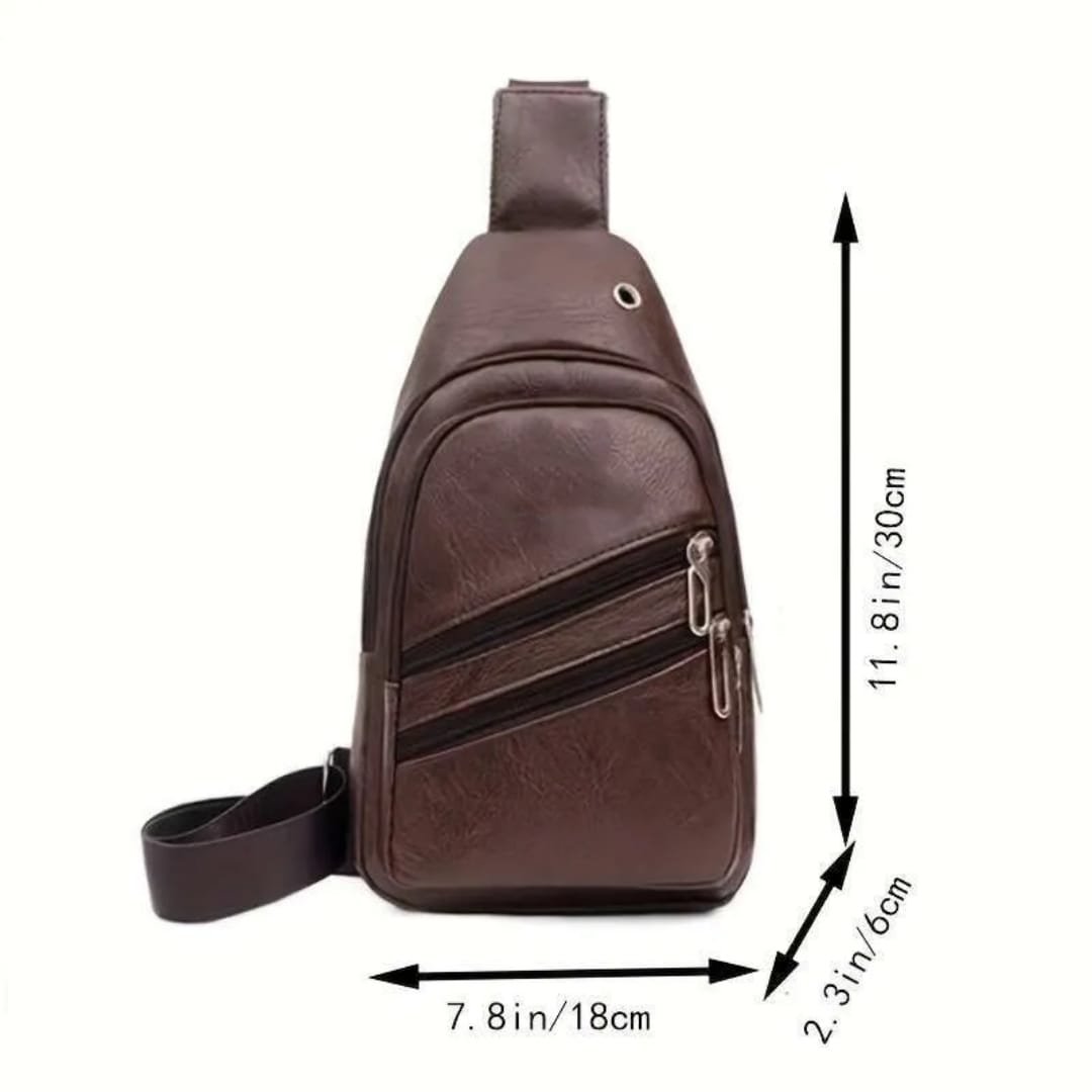 Sac à Bandoulière Multifonction Tondeuse en Cuir PU Souple et Imperméable Pour Homme Avec Trou Pour Écouteurs – Marron