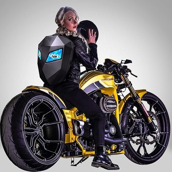 Sac à Dos De Moto Rigide Avec Éclairage LED – Résistant à L’eau et Grand Support Pour Casque Avec Écran Programmable
