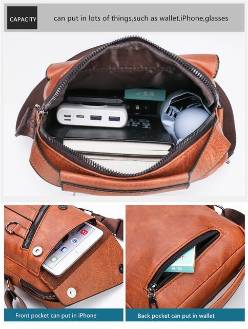 Sacs en Cuir Pour Hommes – Luxueux et à La Mode – Multi-Poches – Noir