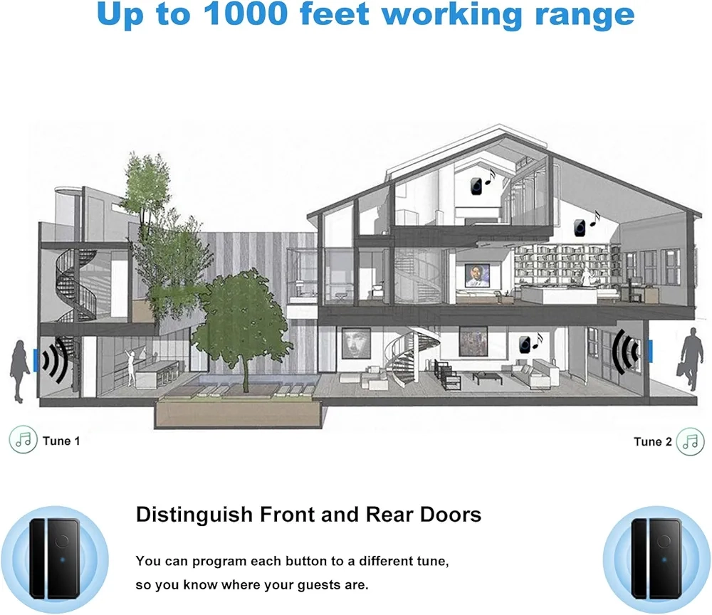 Sonnette Sans Fil Étanche – Récepteur Longue Portée Jusqu’À 300 Mètres