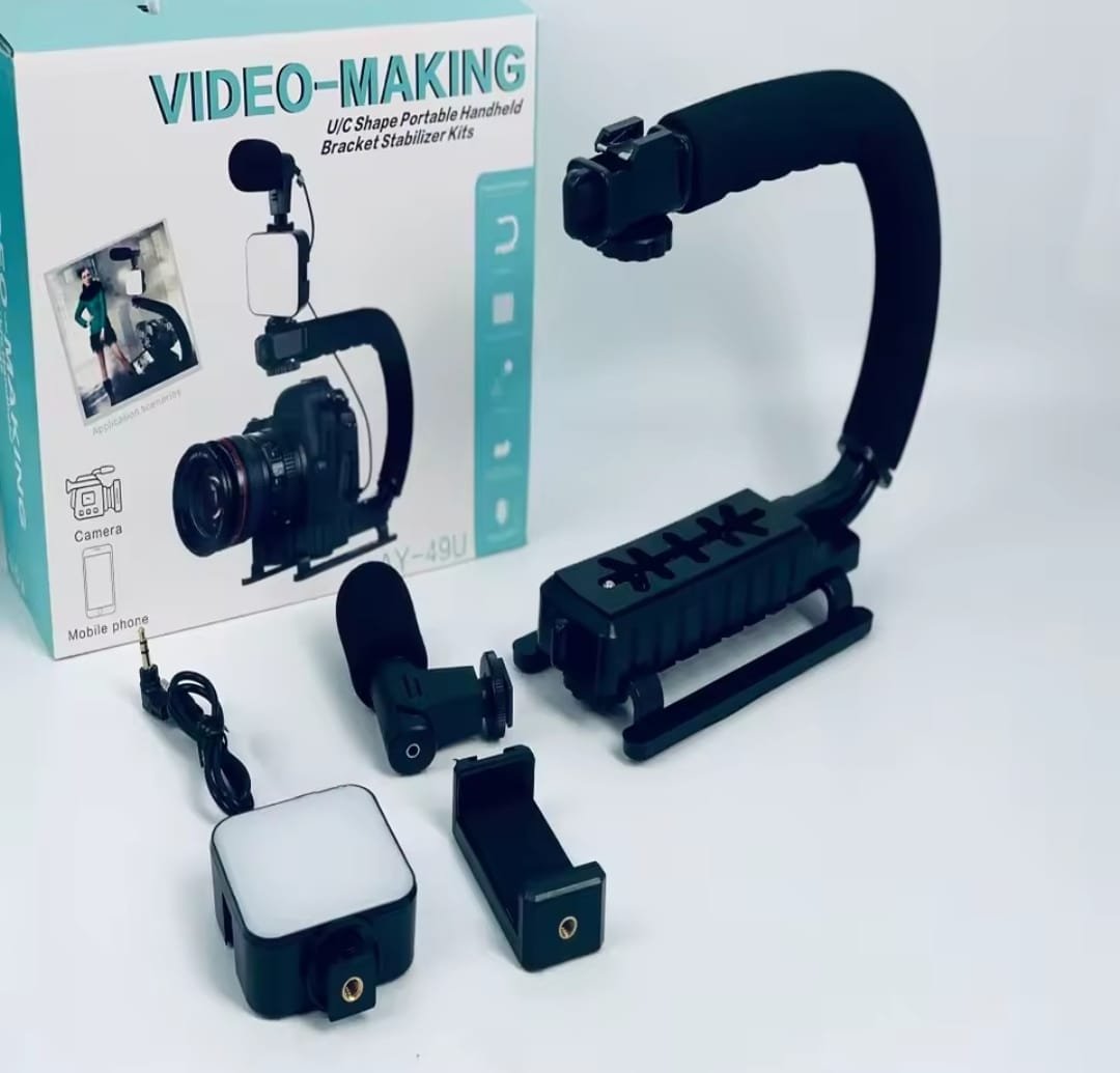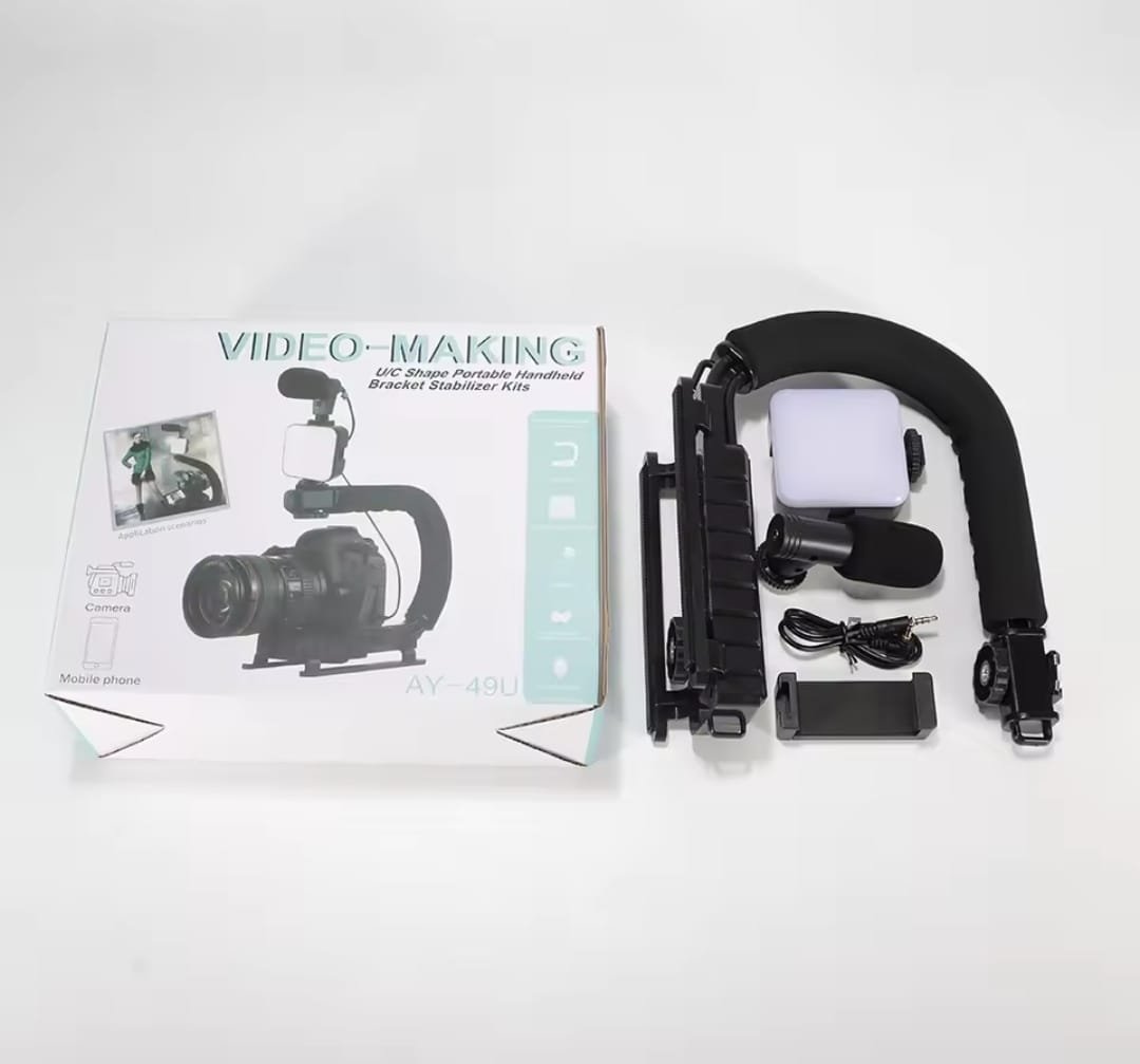 - Kit stabilisateur audio et vidéo anti-vibrations portable pour appareils photo U/C (téléphone portable/appareil photo universel).