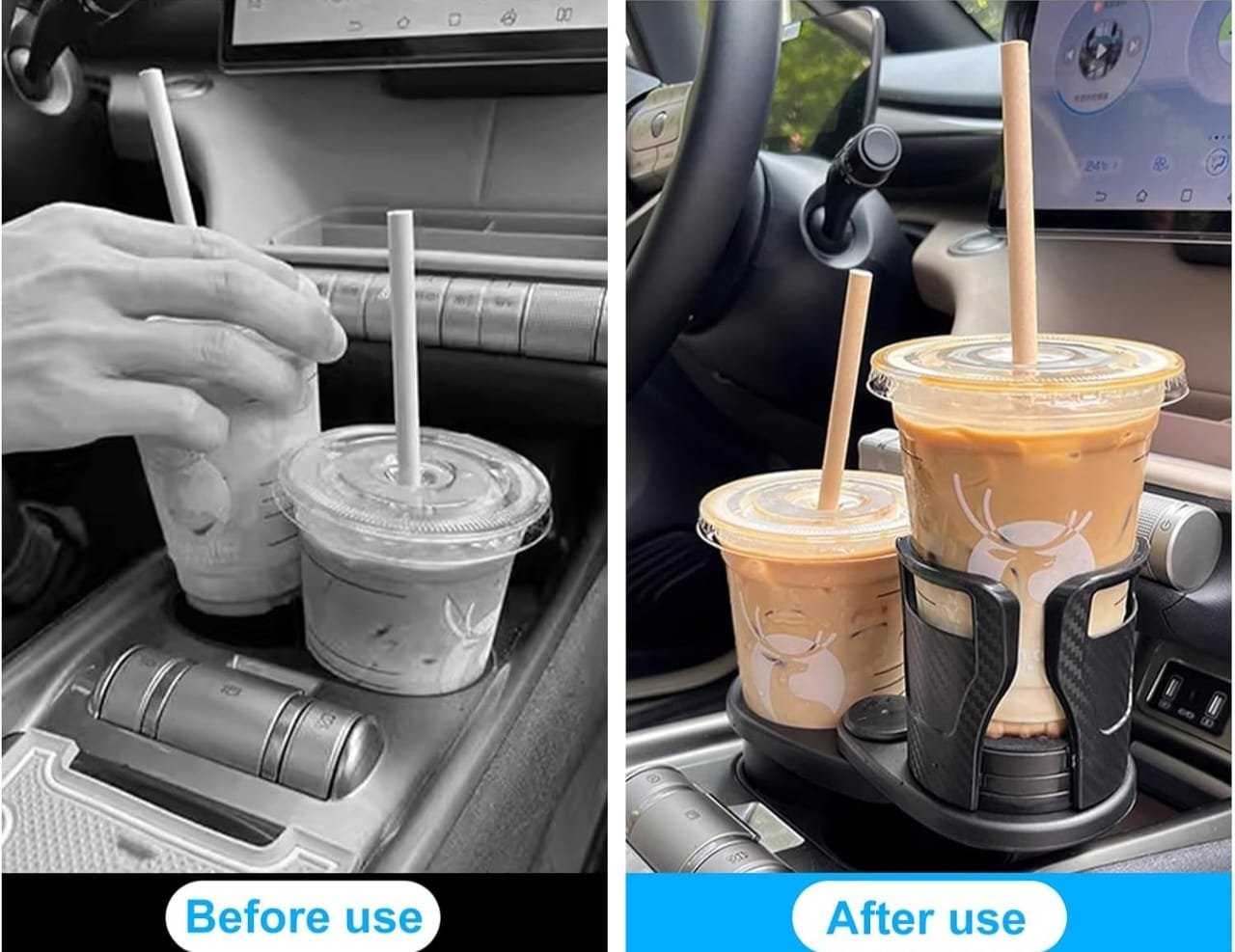 Rotation à 360 °: Le Car Cup Holder and Organizer 2 en 1 peut être tourné à 360 °. en faisant pivoter la base, il peut être transformé en un porte-gobelet double, capable de contenir deux boissons en même temps, ce qui permet d’économiser de l’espace.
