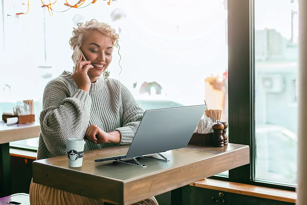 Support Pliable Pour Ordinateur Portable et Tablette Jusqu’à 15 Pouces – Gain De Place – 6 Niveaux De Réglage