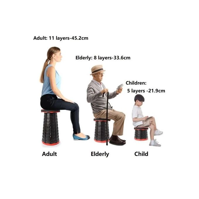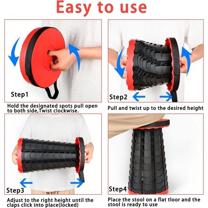 Le tabouret télescopique pliant est la solution idéale pour s’asseoir partout, à tout moment.