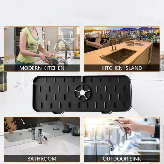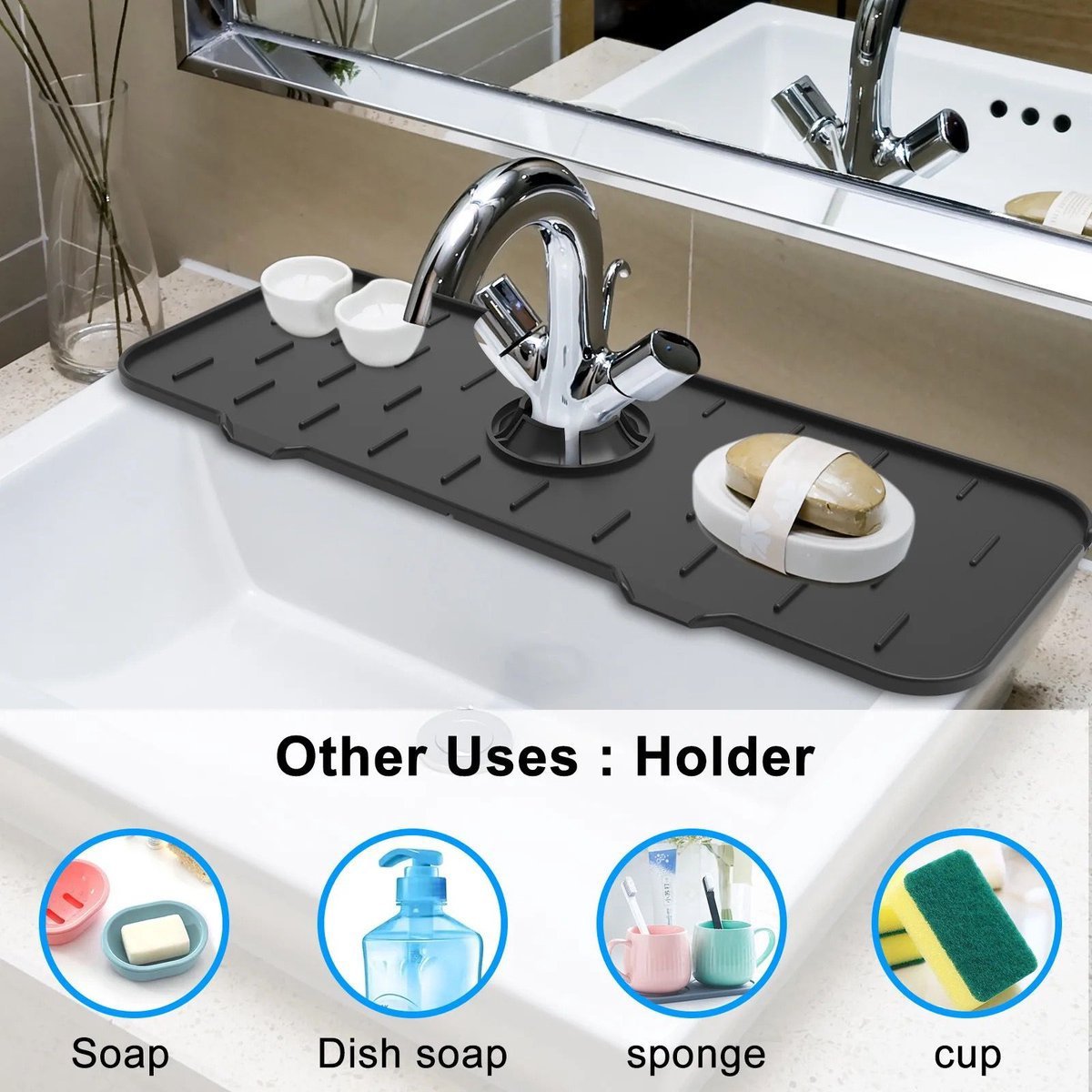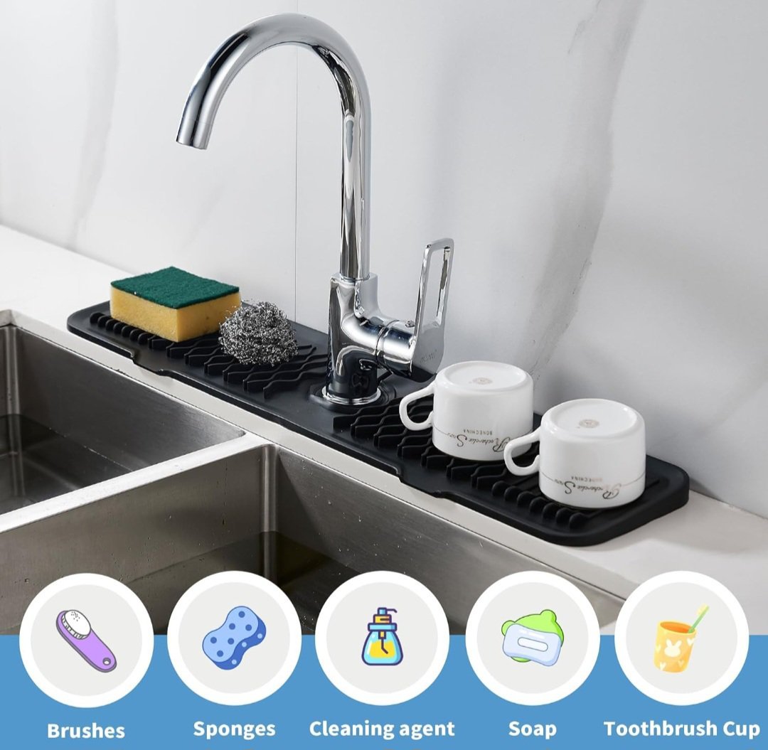 Tapis d’évier de robinet en silicone et porte savon et chiffon 2 en 1 est l’accessoire indispensable pour maintenir l’hygiène et la propreté autour de votre évier.