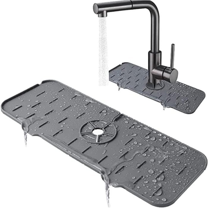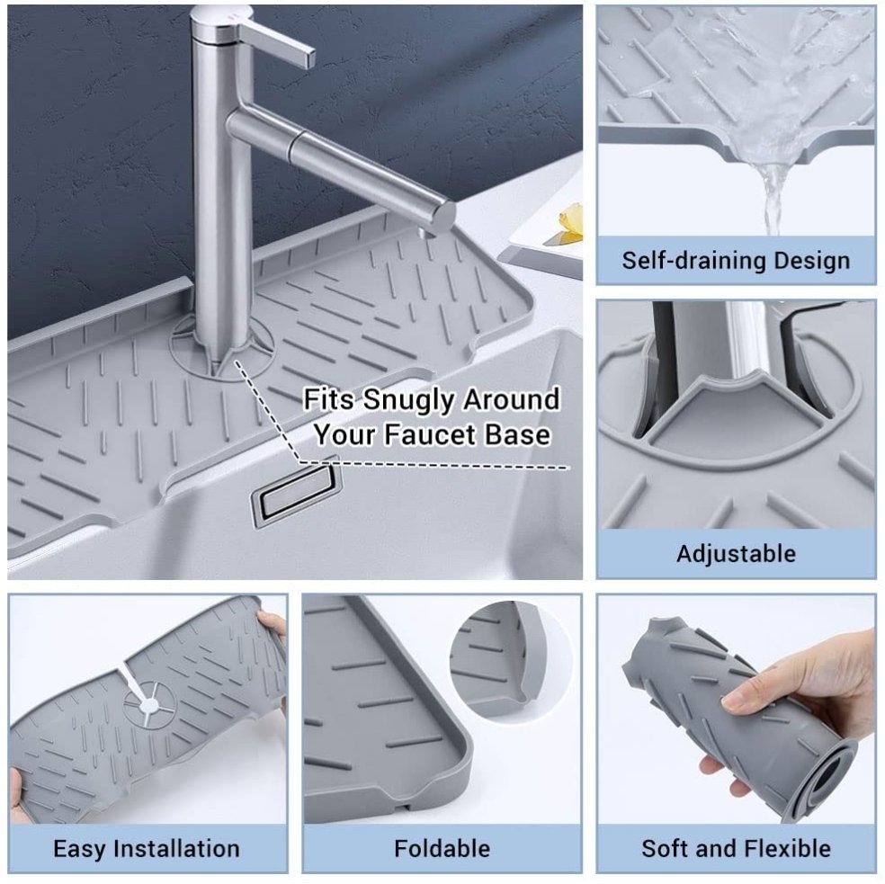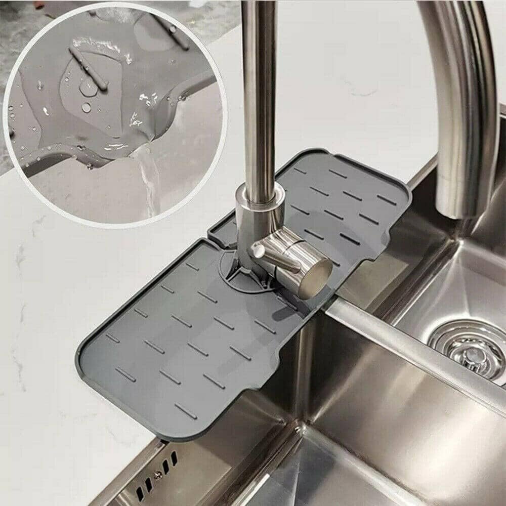 Tapis Égouttoir en Silicone pour Évier et Robinet – Anti-éclaboussures et Organisateur – Gris