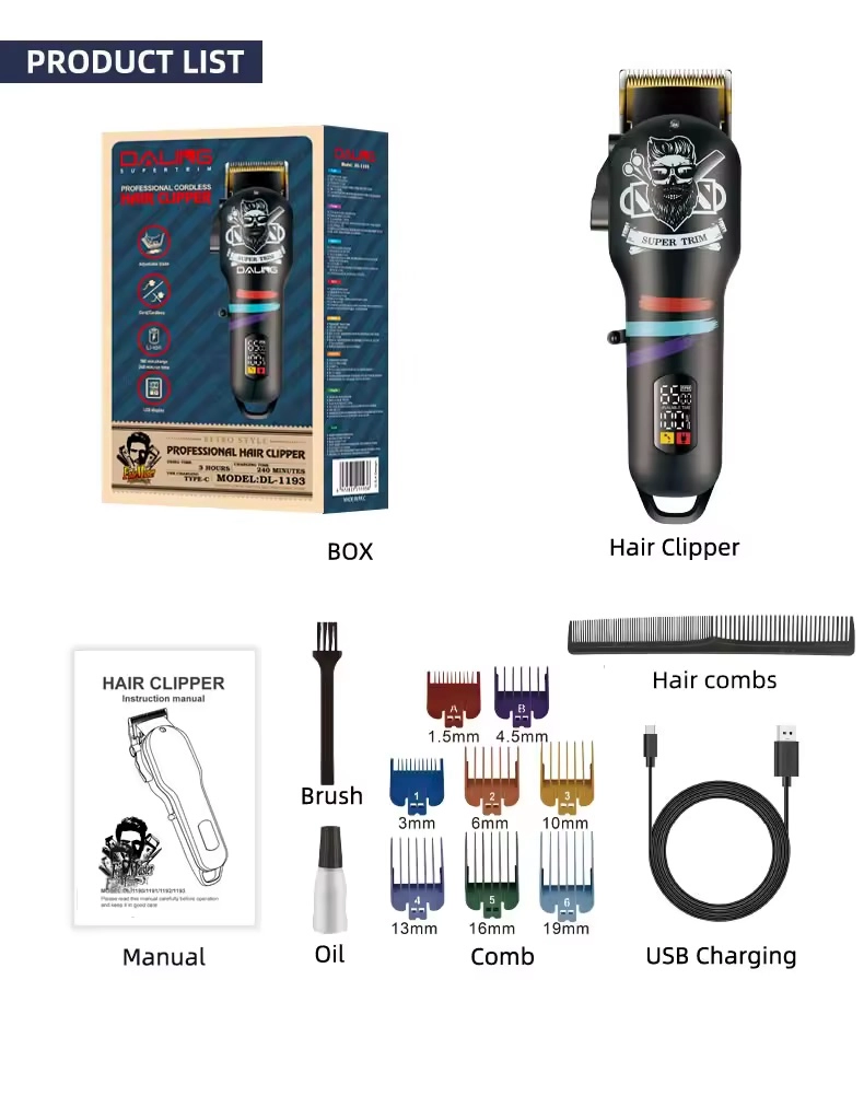 Tondeuse à Cheveux DALING DL-1193 – Rechargeable avec Écran LED