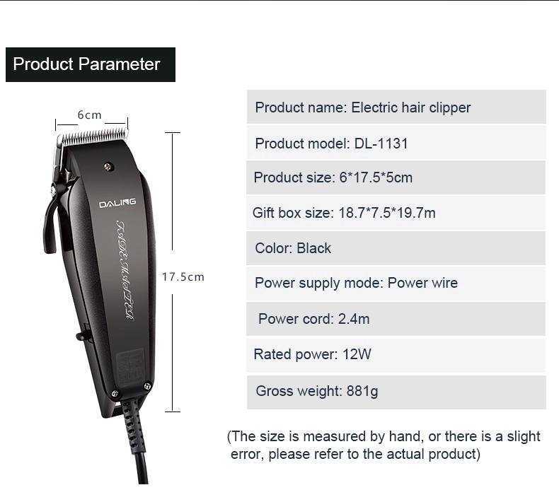 La tondeuse à cheveux DALING DL-1131 est un appareil puissant et pratique conçu pour offrir une coupe nette et précise.
